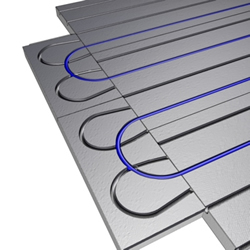 | Běžné systémy bez hliníkové folie nejsou schopny dosáhnout rovnoměrného rozložení tepla. | Díky hliníkové folii na povrchu izolační desky dochází při nahřátí topné vody k rovnoměrnému rozložení tepla. | ||